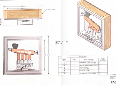 I developed a coin sorter that sorted coins to the exact amount for bank rolls