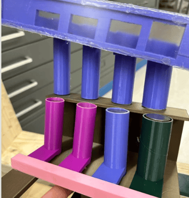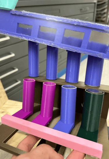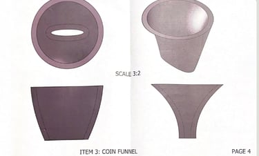 The funnel took 6 failed prototypes to get right. We started off with a big funnel, but not only did it not fit into the wall stud, the coins got stuck at the bottom of the funnel.