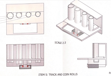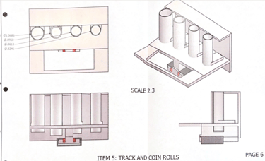 This piece has the perfect angle to hold the coin rolls so they roll down the track without getting caught by too much friction on the walls. They also have holes so they can screw into the wall studs.