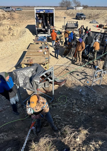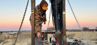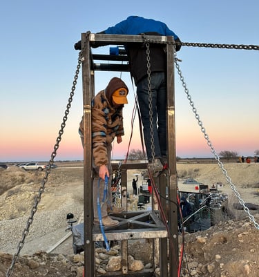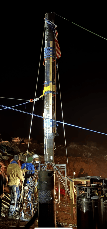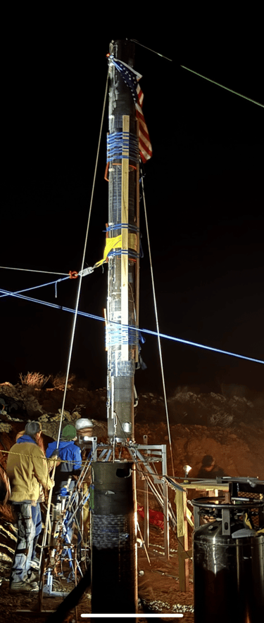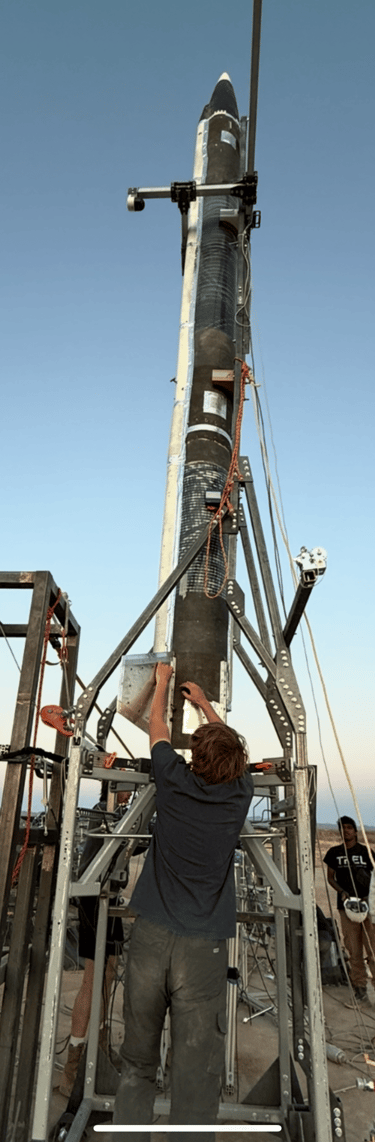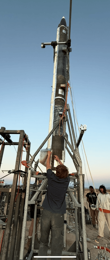 A large portion of this semester’s work took place in Pancake, Texas, where we prepared the rocket for testing and launch readiness on a ranch. Countless weekends were spent in challenging weather conditions, including long, cold nights and burning hot days. In pancake, my team and I focused on integrating systems, troubleshooting hardware, and preparing for the largest collegiate static fire attempt in history, moving us one step closer to Launch. This fieldwork demanded both technical precision and resilience, reinforcing the importance of teamwork under high-stakes conditions. One of the biggest challenges my team solved was lifting the 25 ft, 1000 lb rocket vertically.