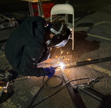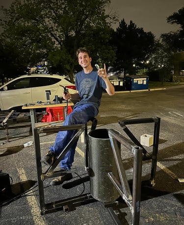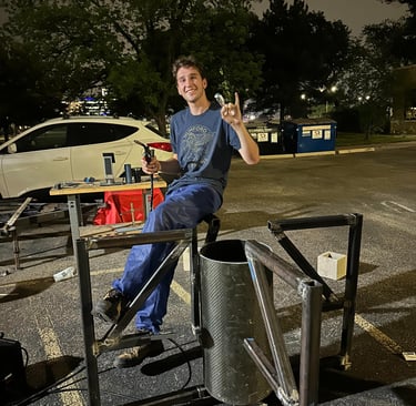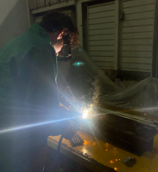 In my second semester, I joined the Rocket Integration Team, where I contributed to assembling and testing major Halcyon subsystems. My responsibilities included designing and creating integrated components, welding structural supports, and collaborating across teams to ensure the proper alignment of interfaces between propulsion, avionics, recovery, and structural systems for testing purposes. Even after cutting my fingertip off during the work, I was giving my time and adapting to those circumstances, as you can see with the 1-handed welding below.